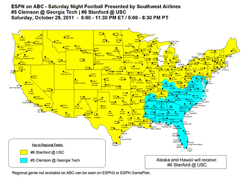 Stanford is looking for its 16th straight victory as it takes on the Trojans in front of a national audience at the Coliseum. Stanford hopes to defy history as no Stanford team has ever defeated USC three consecutive times in the Coliseum (the last team to do it -- UCLA, for four games from 1991-1997). (Gametracker) (All-Access Audio) (ABC/ESPN3 -- BBroadcast Map)