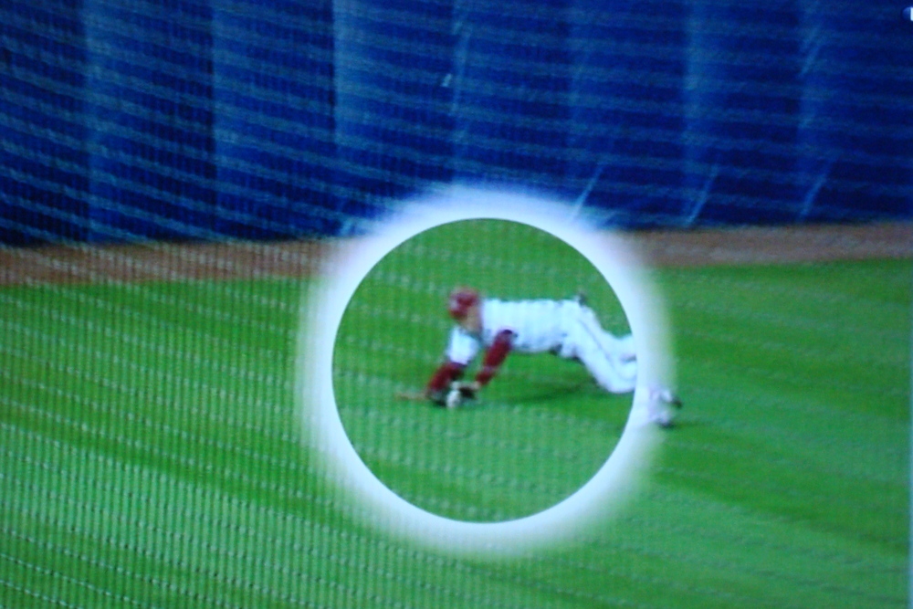 This one was obvious. Definitely the ump blew the call, but Gaffney shouldn’t have been talking about it (and looking so smug). I’d also argue that he should have just popped up and thrown the ball in. If the ump was going to call the out, he would have anyway, and showing a ball that you really, clearly didn’t catch (and know it) is cheap.
