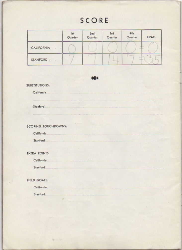 Here's the cover (back and front) from the 1931 Renaissance Fair Big Game. Cal won the duel, 6-0, ending Stanford's 7-game unbeaten streak in the series.