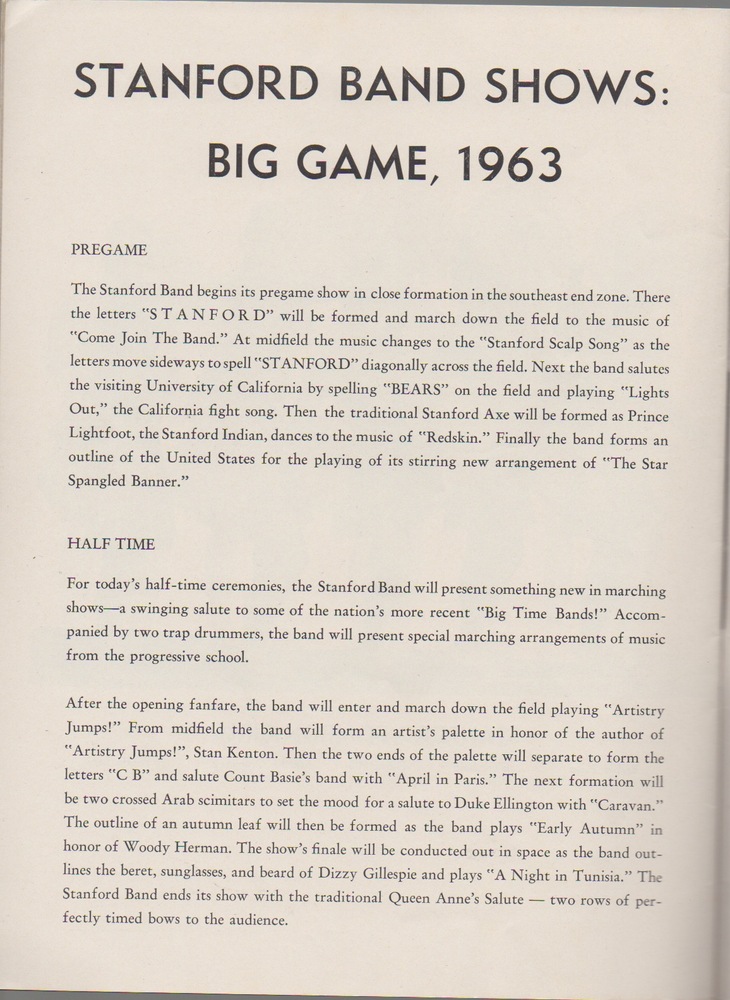 Filed under: 1963 Big Game Program: Stanford Scores Last 19 Points in Win By Scott Allen Aug 31, 2011, 3:34pm PDT Share this story Share this on Facebook Share this on Twitter Share All sharing options Share All sharing options for: 1963 Big Game Program: Stanford Scores Last 19 Points in Win Reddit Pocket Flipboard Email Stanford scored the last 19 points to win 28-17 in John Ralston's first as head coach of the Indians. The game was delayed by one week as a result of the assassination of President John F. Kennedy.