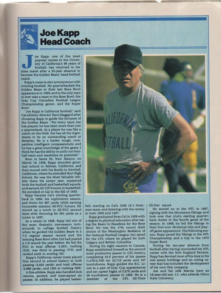 Joe Kapp went 7-4 in his first year at Cal and was named Pac-10 Coach of the Year.
