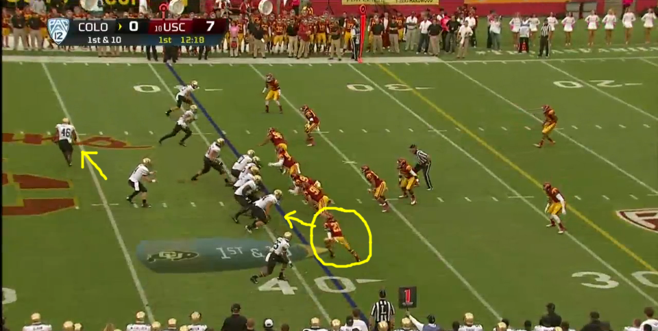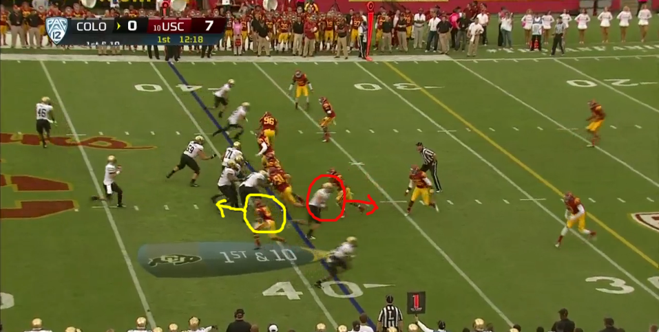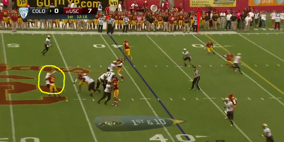 Unfortunately, because the USC receivers were getting free releases off the line of scrimmage, Lee and Woods were always running past the Colorado defenders, making them miss tackles, and dashing into the end zone.