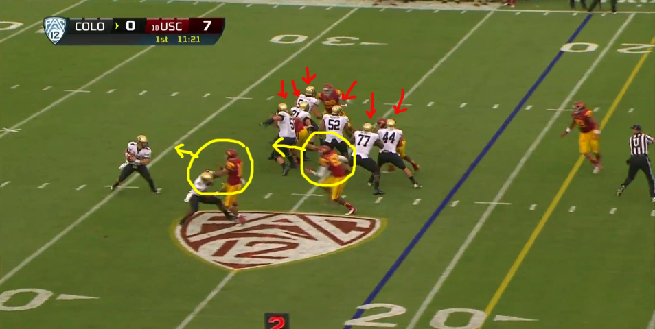 This happened over and over again in this game. Pretty much any time USC brought more than five guys, Colorado experienced a total communication breakdown.
