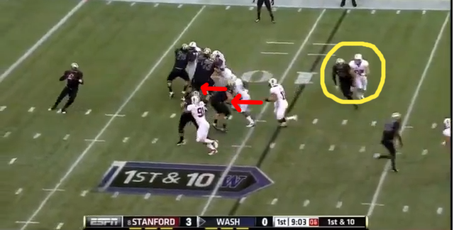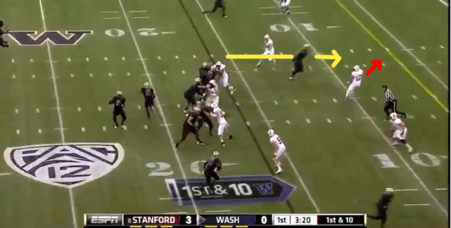 Thankfully for Stanford, its excellent pass rush stopped this play before it even had a chance - but the Washington o-line this year is healthier - and a play like this could possibly go either way this Saturday at Stanford Stadium.