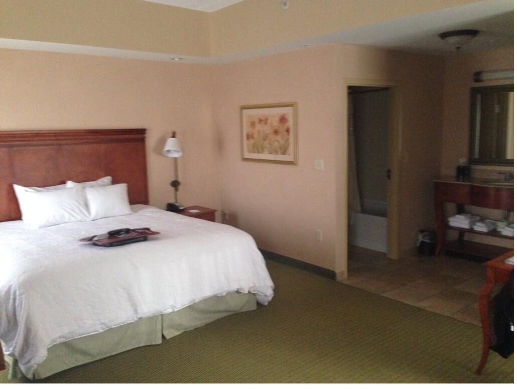 It's Thursday, and I've just arrived at my Hampton Inn room -- a king suite, no less.
