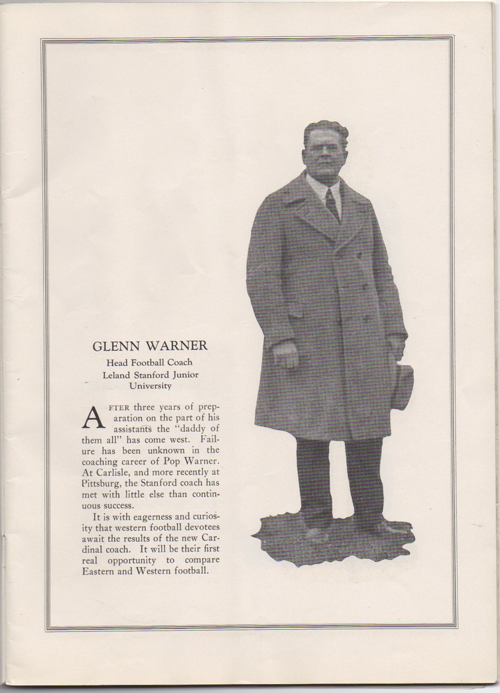 Glenn "Pop" Warner's Stanford team entered the game with a 7-0 record, but was still a heavy underdog to the 7-0-1 Bears, who had won five consecutive Big Games. Ernie Nevers was among the many Stanford players who were injured.