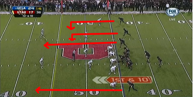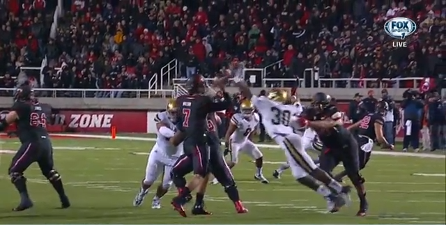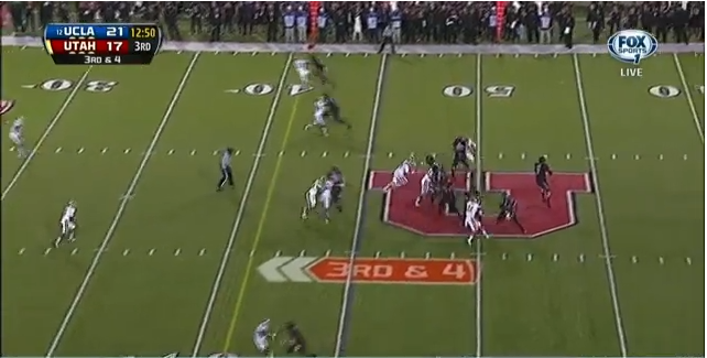 Really I was more excited for the UCLA-Stanford game after watching this one. Hundley was totally beaten most of the night by the blitz. I doubt Stanford will have to bring the numbers Utah did to get the same effect. That means Hundley should be hurried and forced to throw into better/more numerous defenders.